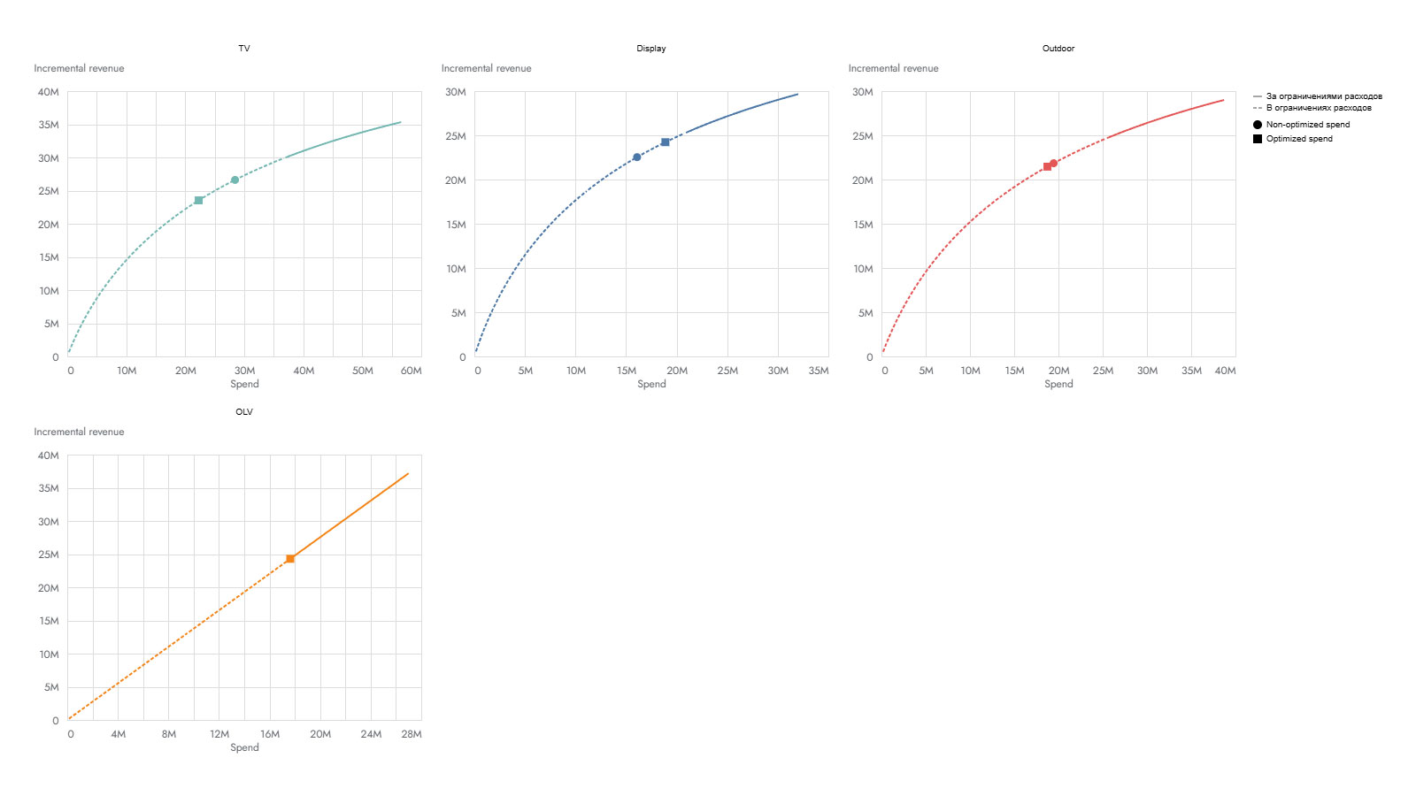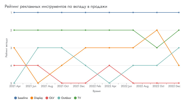 Модель выявляет нерентабельные каналы и инструменты, в которые стоит вложиться. Эти рекомендации можно использовать при разработке стратегии продвижения бизнеса с фокусом на эффективность.
